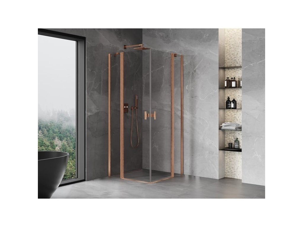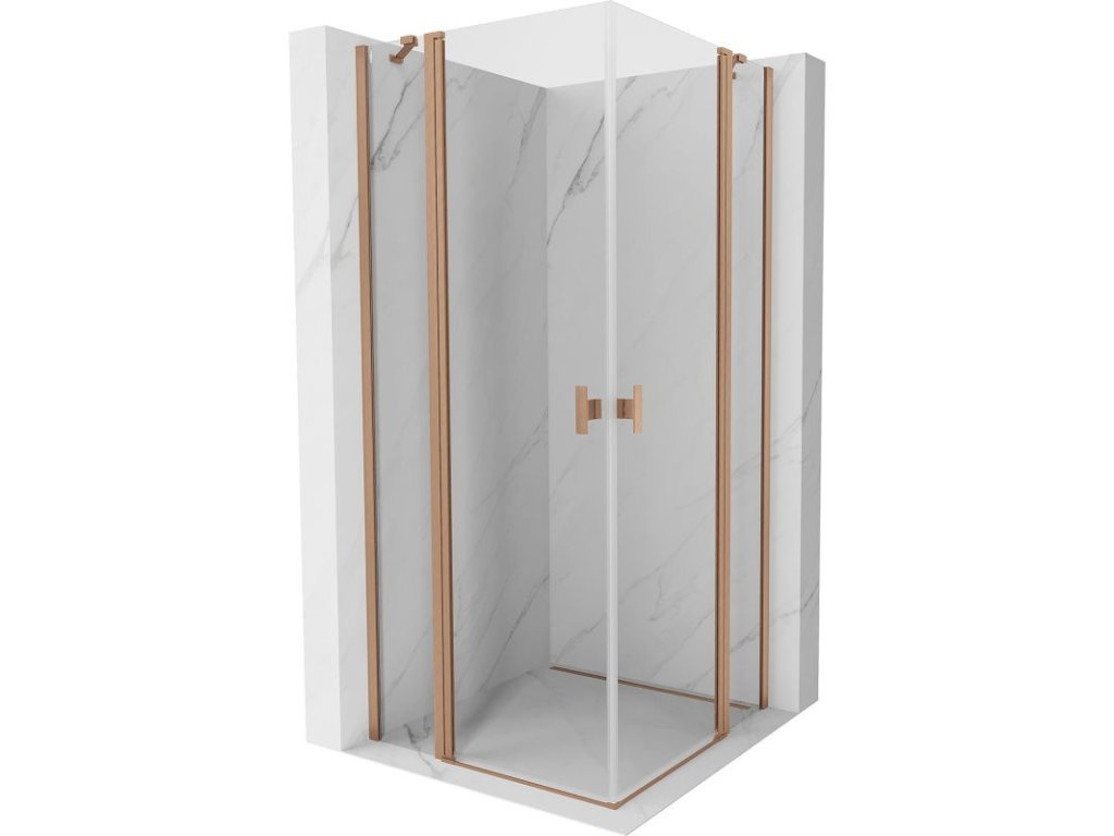 MEXEN/S - Mist Duo sprchový kout dveře křídlové 70 x 70, transparent, měď kartáčovaná 8A4-070-070-65-00