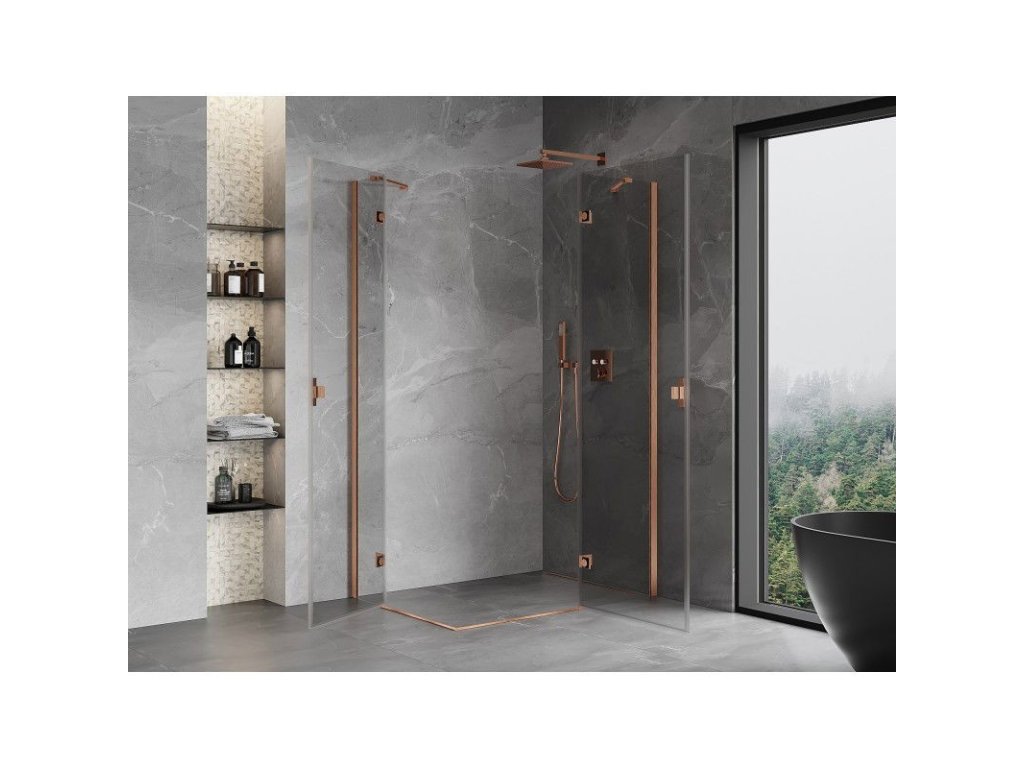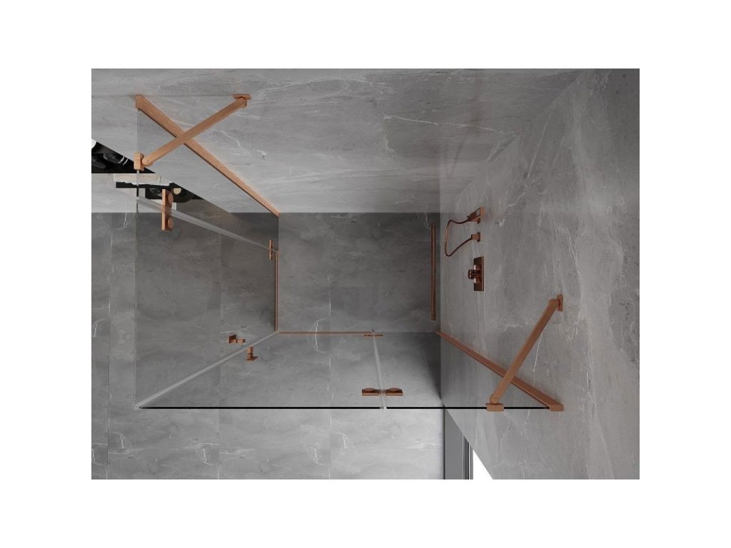 MEXEN/S - Mist H Duo sprchový kout dveře křídlové 70 x 75, transparent, měď kartáčovaná 8A5-070L-075P-65-00