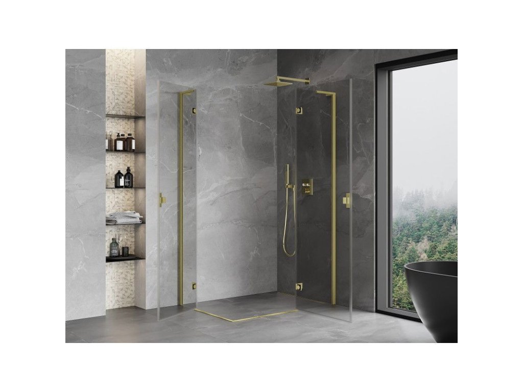 MEXEN/S - Mist-H L Duo sprchový kout dveře křídlové 105 x 110, transparent, zlato kartáčovaná 8A5L-105L-110P-55-00