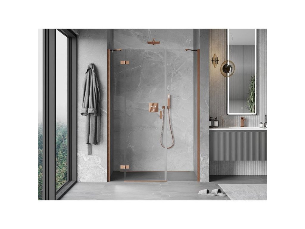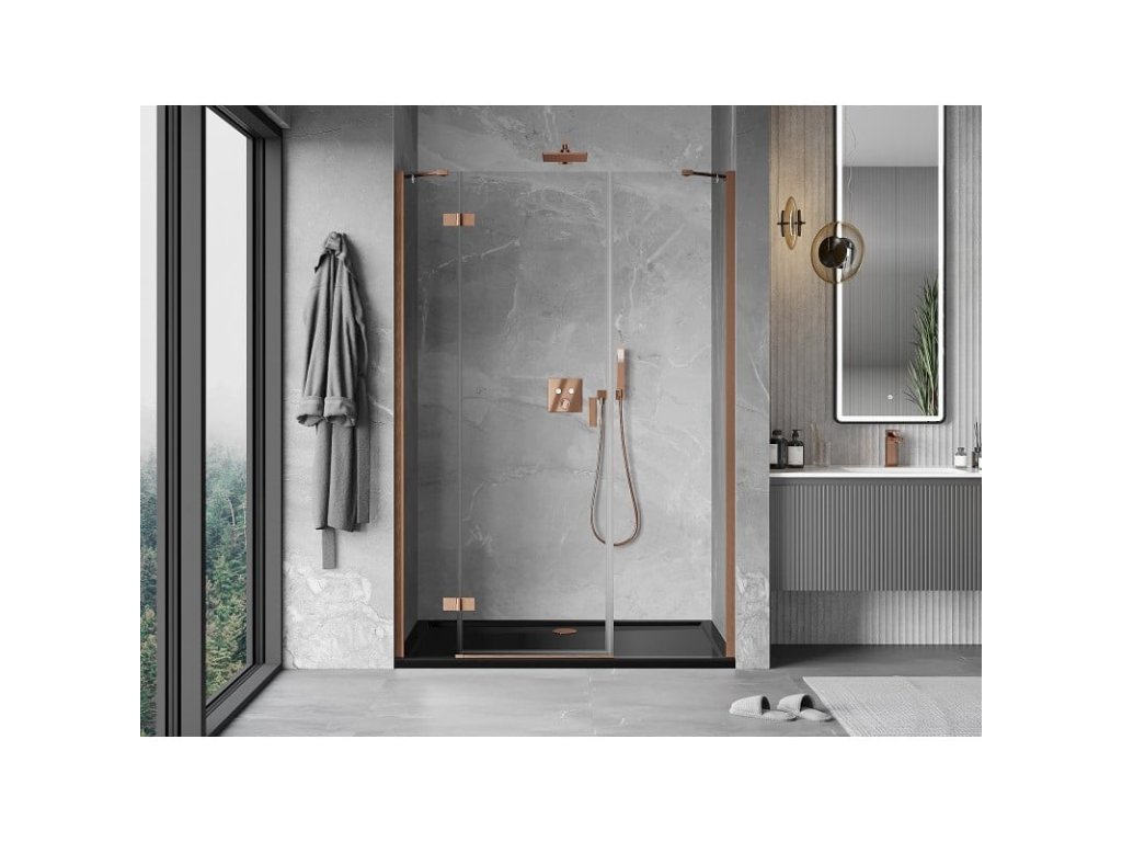 MEXEN/S - Mist-H sprchové dveře křídlové levé 155, transparent, měď kartáčovaná 8A5-155-001-65-00-L