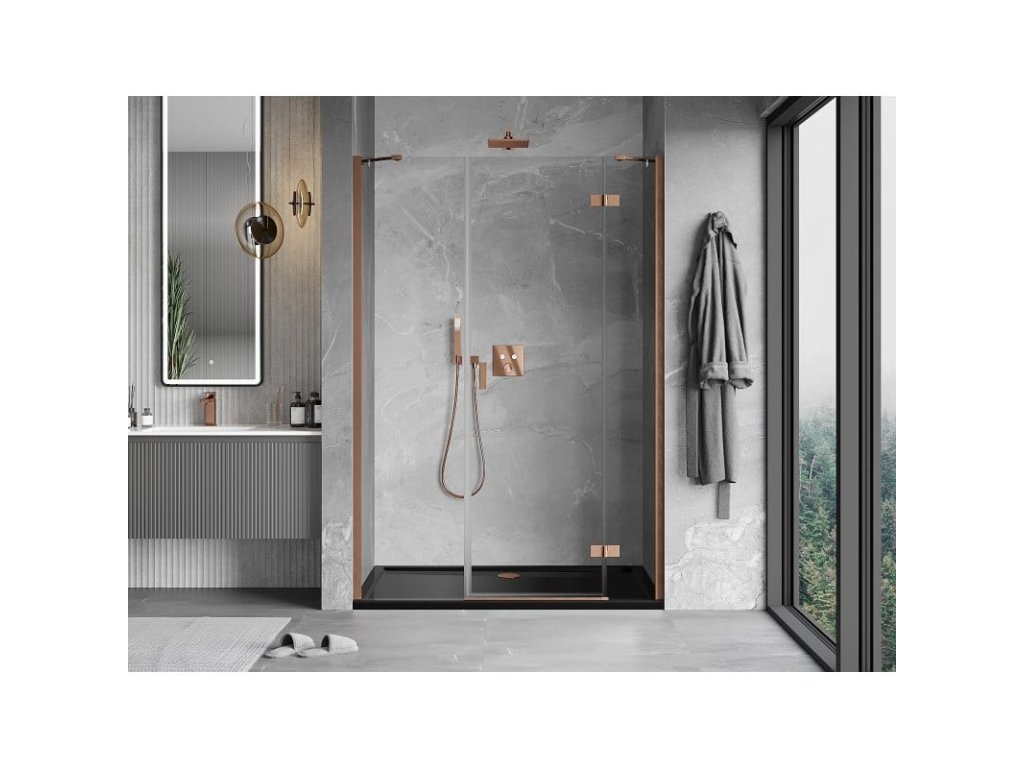 MEXEN/S - Mist-H sprchové dveře křídlové pravé 155, transparent, měď kartáčovaná 8A5-155-001-65-00-P