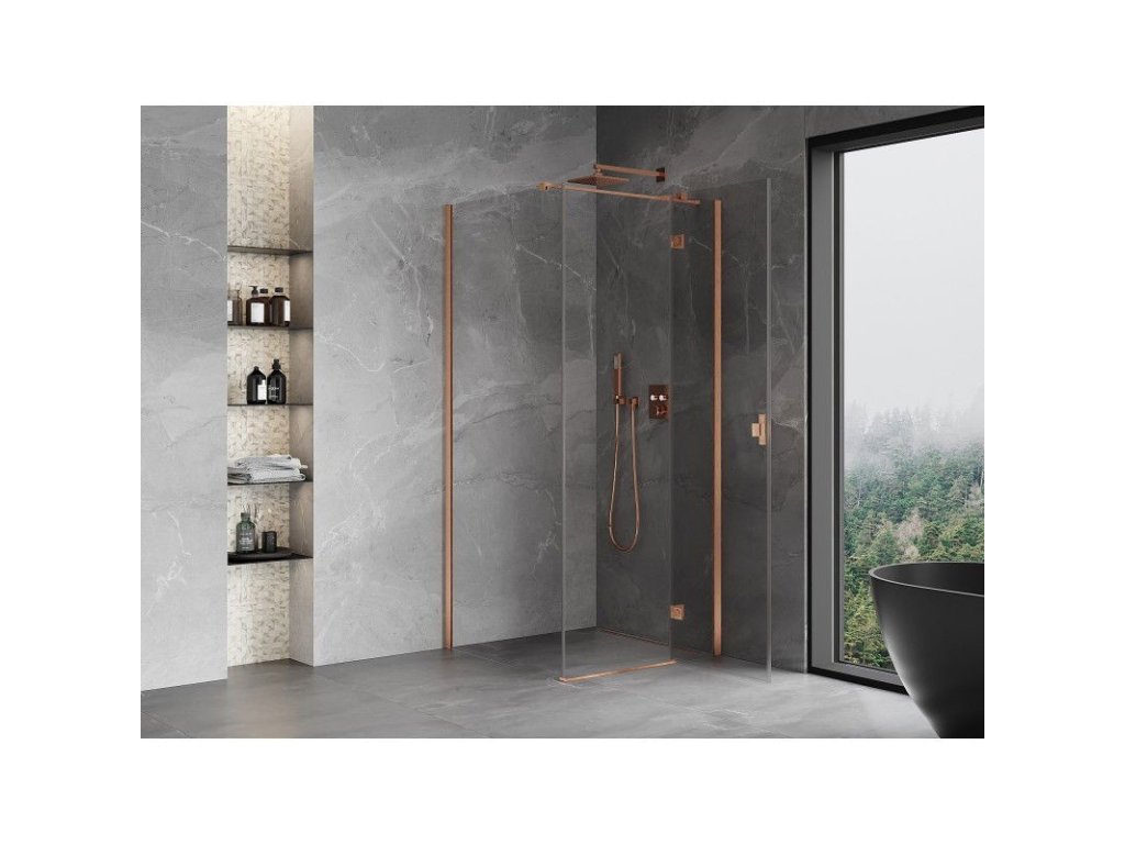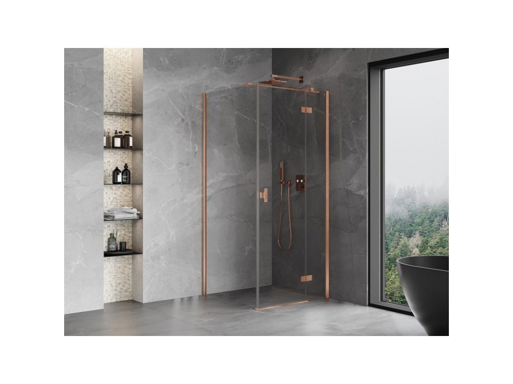 MEXEN/S - Mist H T sprchový kout dveře křídlové pravá 100 x 100, transparent, měď kartáčovaná 8A5T-100-100-65-00-P