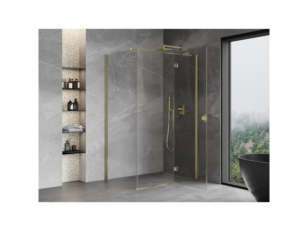 MEXEN/S - Mist H T sprchový kout dveře křídlové pravá 75 x 90, transparent, zlato 8A5T-075-090-50-00-P