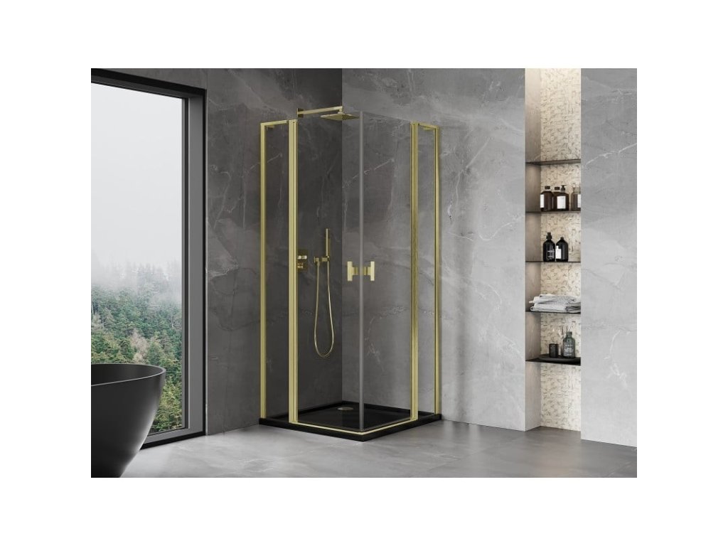 MEXEN/S - Mist L Duo sprchový kout dveře křídlové 95 x 95, transparent, zlato kartáčovaná 8A4L-095-095-55-00
