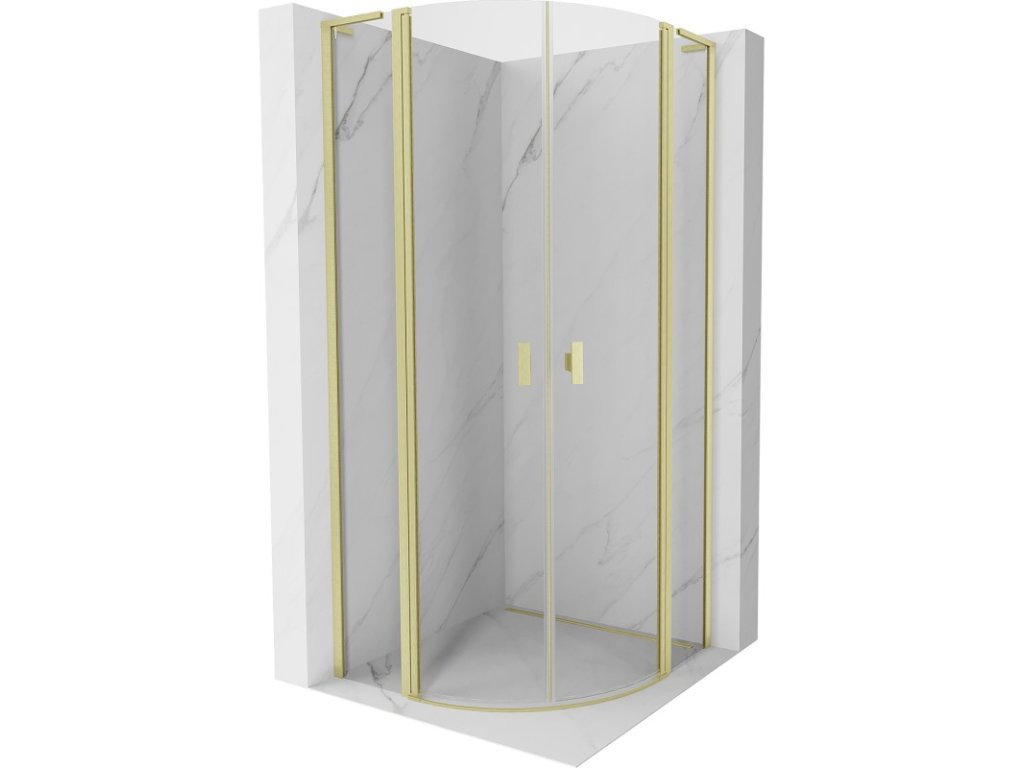 Specifikace produktu: Rozměr: 100x100 cm Výška: 200 cm Poloměr zakřivení R55 Strana montáže: Univerzální Vchod: Dveře s otočnými křídly Barva skla: Průhledná Povrchová úprava: Kartáčované zlato Profil: Hliník Úhlový stabilizátor L: Nerezová ocel Typ skla: Tvrzené Tloušťka skla: 6 mm Povrchová úprava pro snadné čištění Nastavitelná šířka Možnost instalace na sprchovou vaničku nebo dlaždice Mechanismus pro zvedání a spouštění dveří Magnetický proužek a elastomerové těsnění pro odtok vody Hliníkový práh těsnění dveříDoplňkové parametry