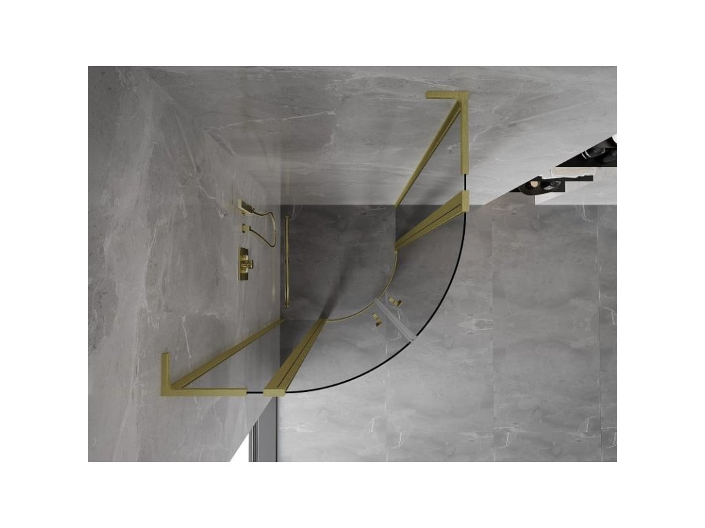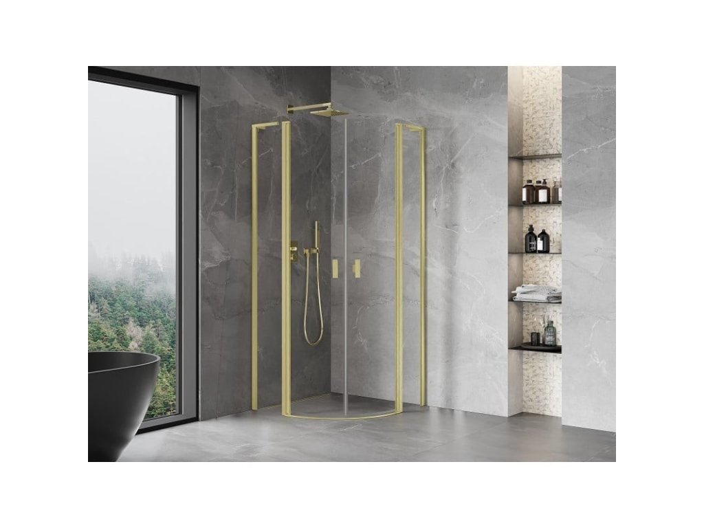 Specifikace produktu: Rozměr: 90x90 cm Výška: 200 cm Poloměr zakřivení R55 Strana montáže: Univerzální Vchod: Dveře s otočnými křídly Barva skla: Průhledná Povrchová úprava: Kartáčované zlato Profil: Hliník Úhlový stabilizátor L: Nerezová ocel Typ skla: Tvrzené Tloušťka skla: 6 mm Povrchová úprava pro snadné čištění Nastavitelná šířka Možnost instalace na sprchovou vaničku nebo dlaždice Mechanismus pro zvedání a spouštění dveří Magnetický proužek a elastomerové těsnění pro odtok vody Hliníkový práh těsnění dveříDoplňkové parametry
