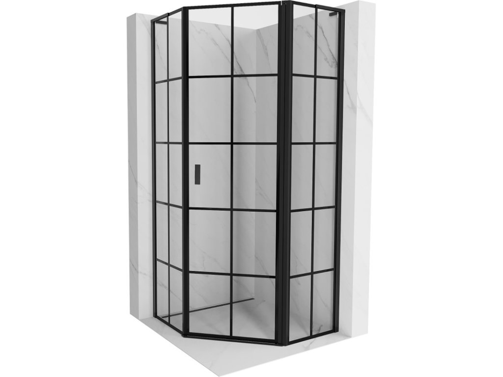 Specifikace produktu: Rozměr: 100x100 cm (pravé dveře 100 cm, stěna 100 cm) Výška: 200 cm Strana montáže: Pravá Vchod: Dveře s výklopnými křídly Barva skla: Černá mřížka Povrchová úprava: Černá Profil: Hliník Úhlový stabilizátor L: Nerezová ocel Typ skla: Tvrzené Tloušťka skla: 6 mm Povrchová úprava pro snadné čištění Nastavitelná šířka Možnost instalace na sprchovou vaničku nebo dlaždice Mechanismus pro zvedání a spouštění dveří Magnetický proužek a elastomerové těsnění pro odtok vody Hliníkový práh těsnění dveříDoplňkové parametry