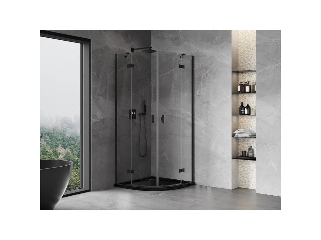 Specifikace produktu: Rozměr: 70x70 cm Výška: 200 cm Poloměr zakřivení R55 Strana montáže: Univerzální Vchod: Dveře s otočnými panty Barva skla: Průhledná Povrchová úprava: Černá Profil: Hliník Konzola: Nerezová ocel Typ skla: Tvrzené Tloušťka skla: 6 mm Povrchová úprava pro snadné čištění Nastavitelná šířka Možnost instalace na sprchovou vaničku nebo dlaždice Mechanismus pro zvedání a spouštění dveří Mosazné panty v jedné rovině se skleněnou tabulí Magnetický proužek a elastomerové těsnění pro odvod vody Hliníkový práh těsnění dveříDoplňkové parametry