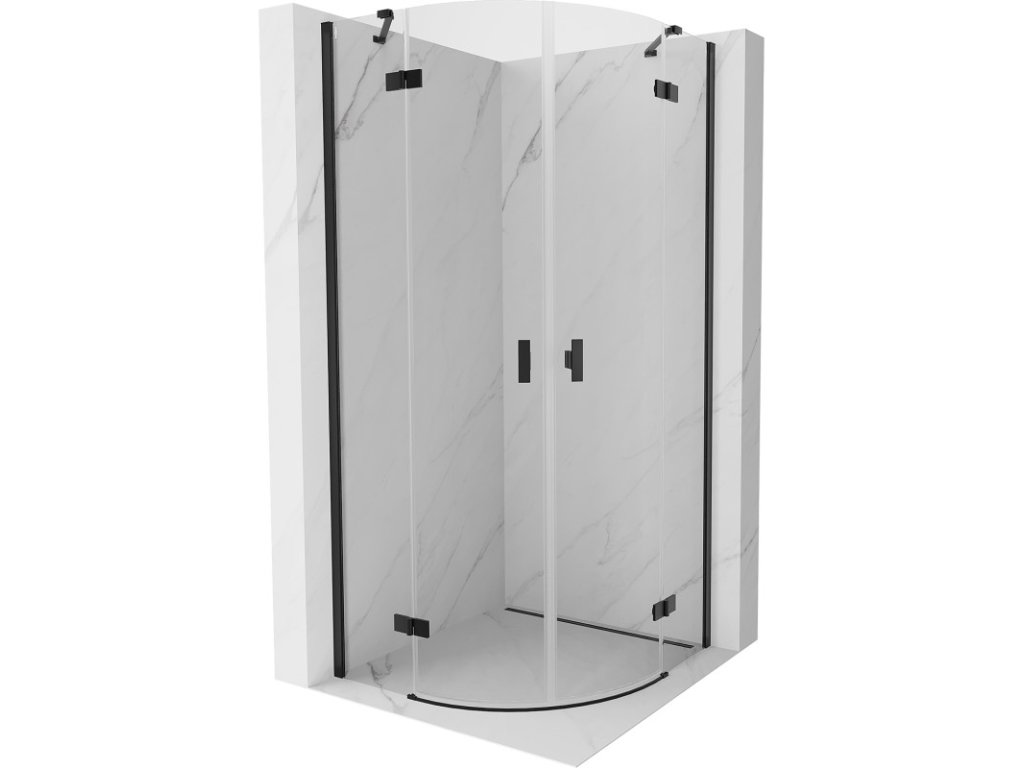 MEXEN/S - Mist sprchový kout čtvrtkruh, křídlové 70 x 70, transparent, černá 8A33-070-070-70-00