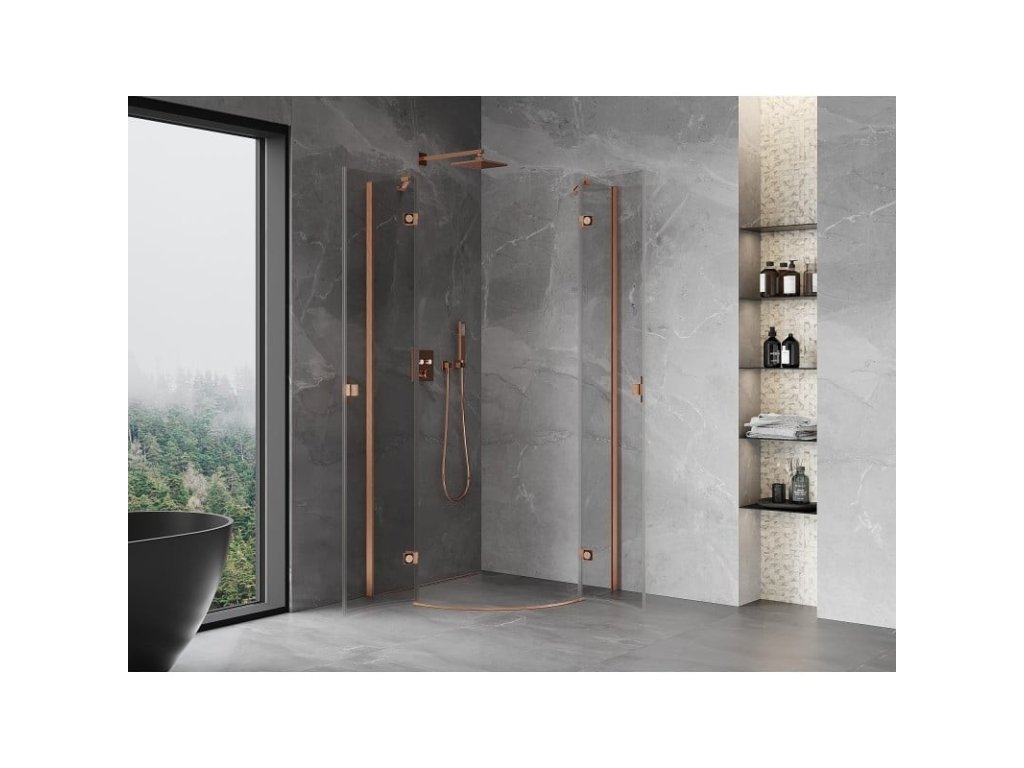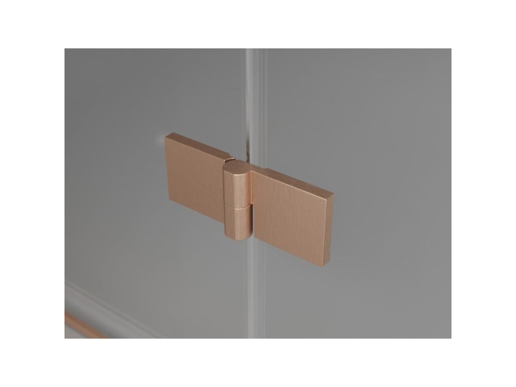 Specifikace produktu: Rozměr: 70x70 cm Výška: 200 cm Poloměr zakřivení R55 Strana montáže: Univerzální Vchod: Dveře s otočnými panty Barva skla: Průhledná Povrchová úprava: Kartáčovaná měď Profil: Hliník Konzola: Nerezová ocel Typ skla: Tvrzené Tloušťka skla: 6 mm Povrchová úprava pro snadné čištění Nastavitelná šířka Možnost instalace na sprchovou vaničku nebo dlaždice Mechanismus pro zvedání a spouštění dveří Mosazné panty v jedné rovině se sklem Magnetický proužek a elastomerové těsnění pro odtok vody Hliníkový práh těsnění dveříDoplňkové parametry