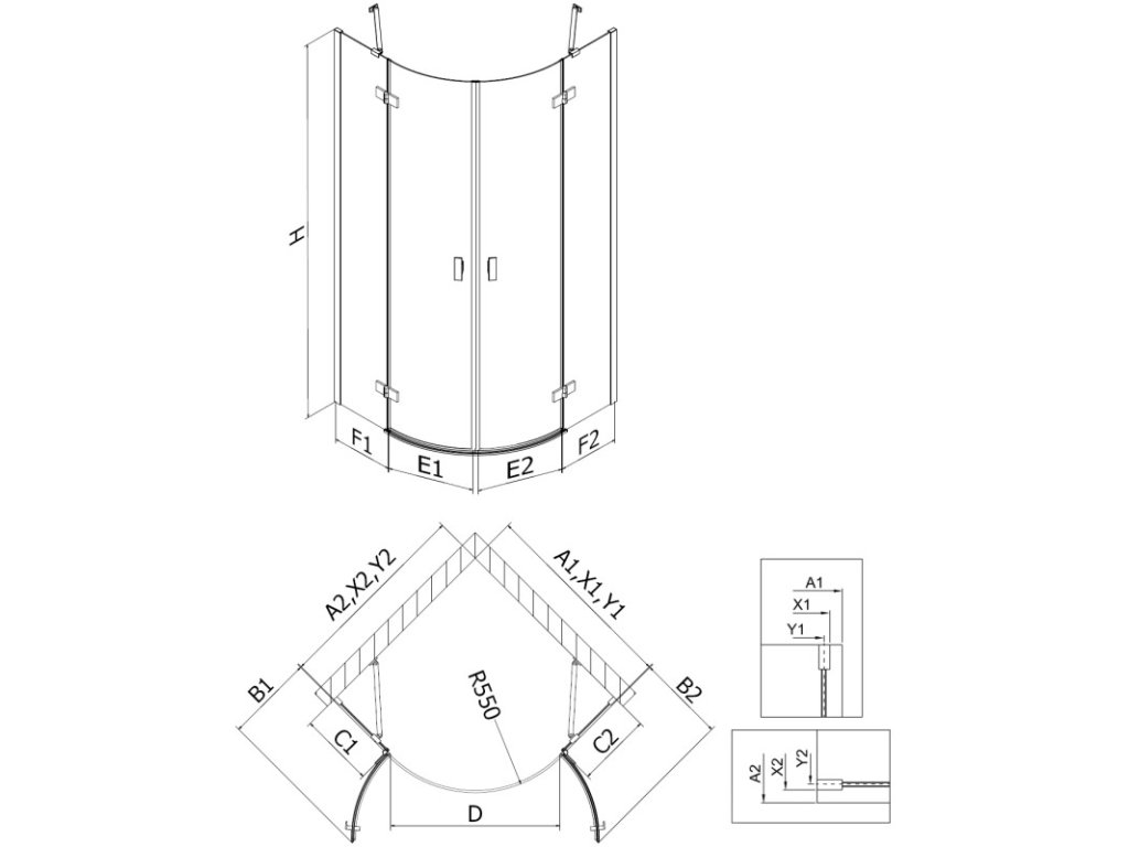 Specifikace produktu: Rozměr: 80x80 cm Výška: 200 cm Poloměr zakřivení R55 Strana montáže: Univerzální Vchod: Dveře s otočnými panty Barva skla: Průhledná Povrchová úprava: Kartáčovaná měď Profil: Hliník Konzola: Nerezová ocel Typ skla: Tvrzené Tloušťka skla: 6 mm Povrchová úprava pro snadné čištění Nastavitelná šířka Možnost instalace na sprchovou vaničku nebo dlaždice Mechanismus pro zvedání a spouštění dveří Mosazné panty v jedné rovině se sklem Magnetický proužek a elastomerové těsnění pro odvod vody Hliníkový práh těsnění dveříDoplňkové parametry