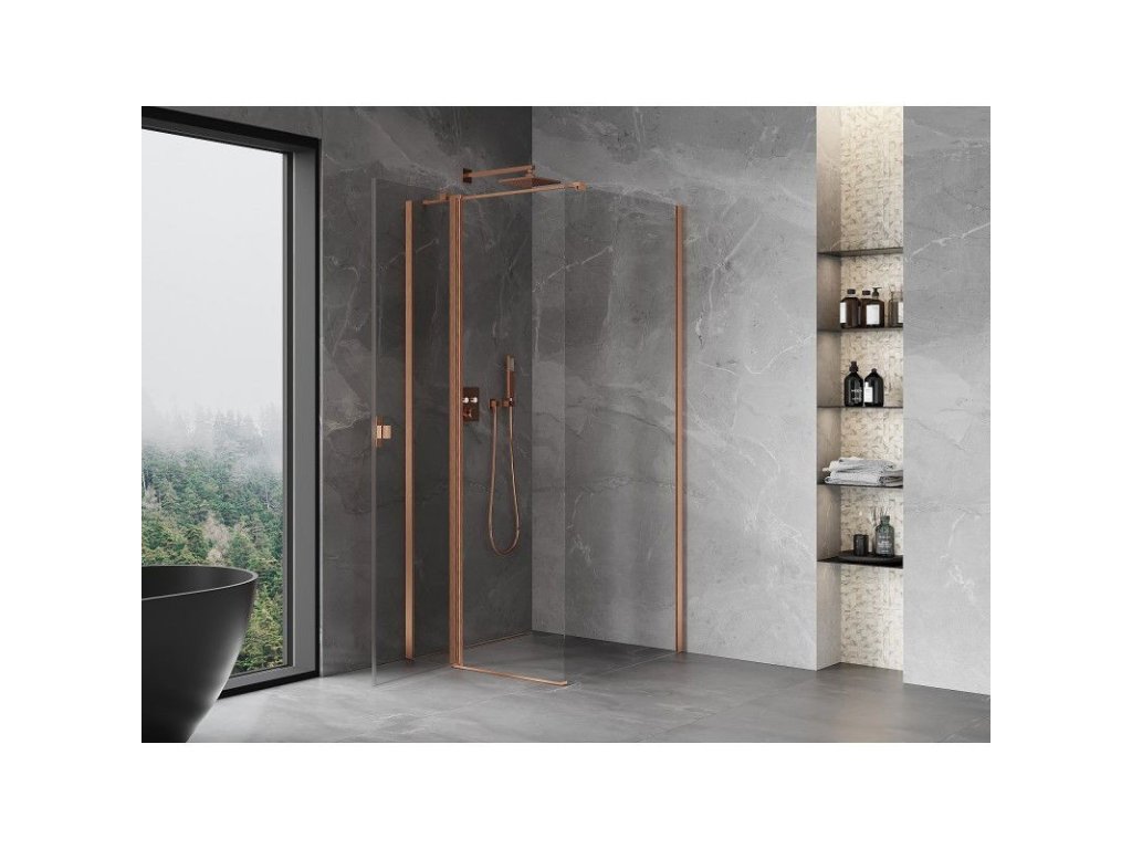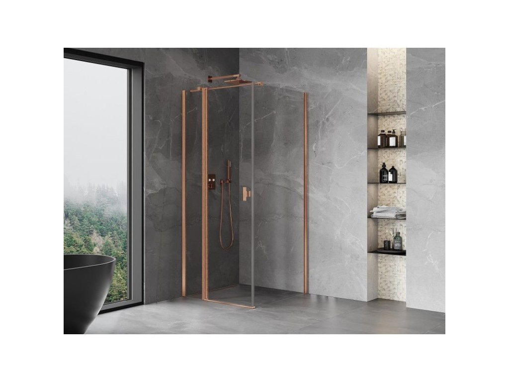 MEXEN/S - Mist T sprchový kout dveře křídlové 80 x 80, transparent, měď kartáčovaná 8A4T-080-080-65-00