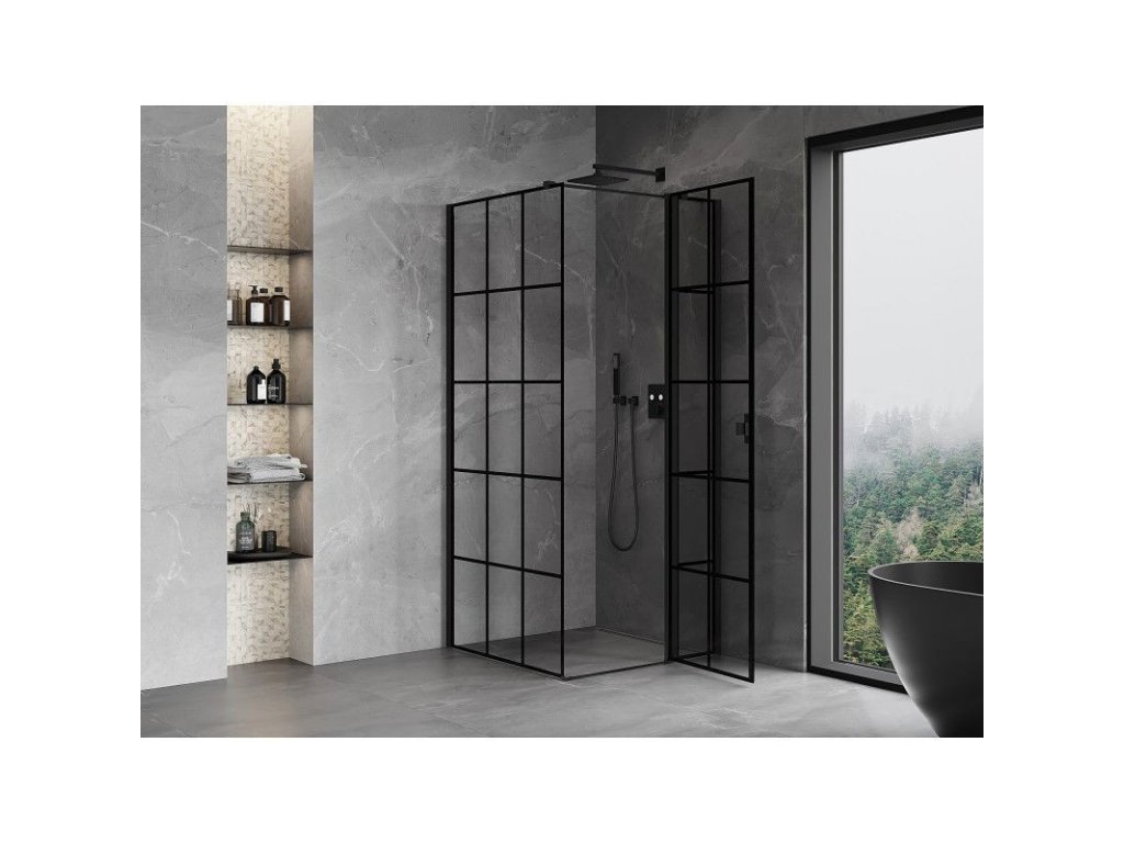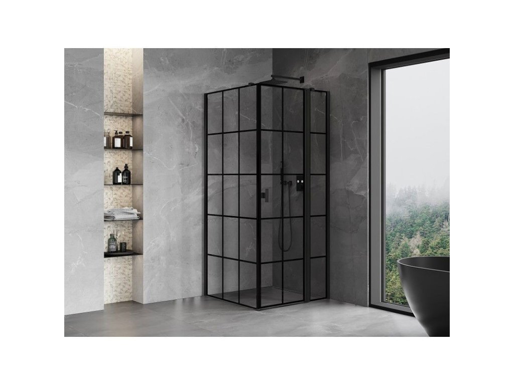 MEXEN/S - Mist T sprchový kout dveře křídlové pravá 80 x 80, černá dekor, černá 8A4T-080-080-70-77-P