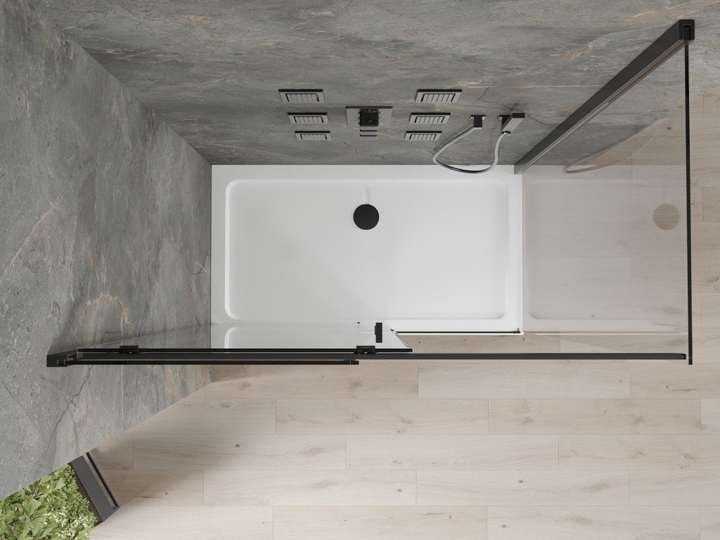 MEXEN/S - Omega sprchový kout 130x70, transparent, černá + bílá vanička se sifonem 825-130-070-70-00-4010B