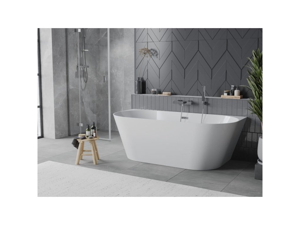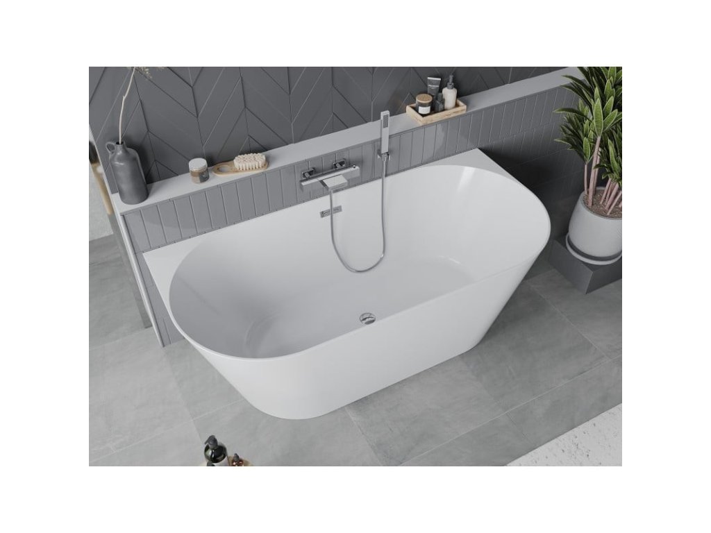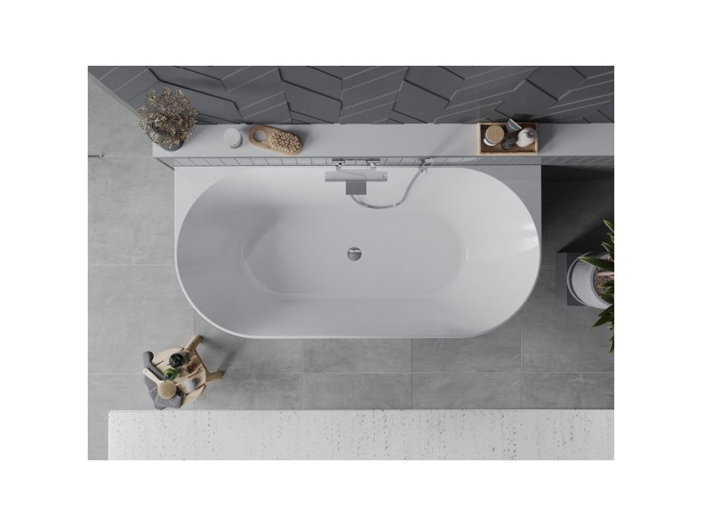MEXEN/S - Oval Slim volně stojící vana nástěnná 170 x 80, bílá, sifon a přepad chrom 52661708000-01