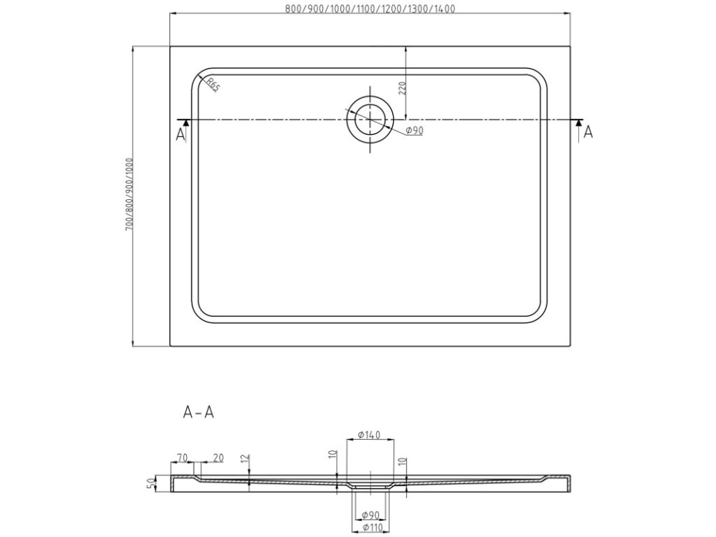 Technické údaje sprchové vaničky: