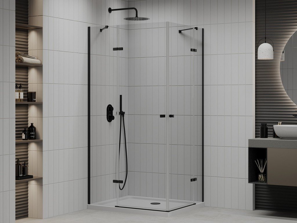 MEXEN/S - Roma Duo sprchový kout 80x70, transparent, černá +vanička se sifonem 854-080-070-70-02-4010B