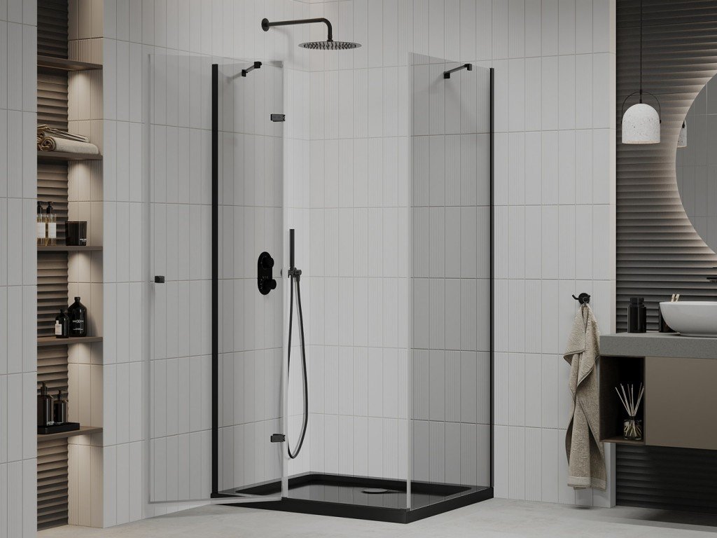 MEXEN/S - Roma sprchový kout 100x80, transparent, černá + černá vanička se sifonem 854-100-080-70-00-4070B