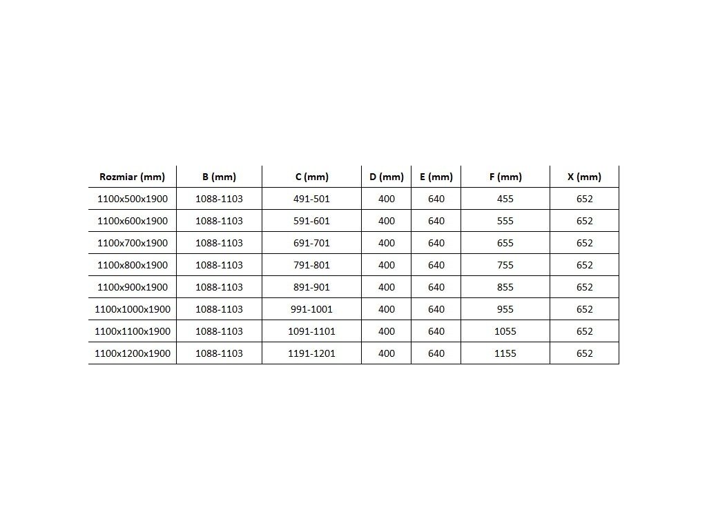 Rozměr: 110x100 cm (dveře 110 cm, stěna 100 cm)