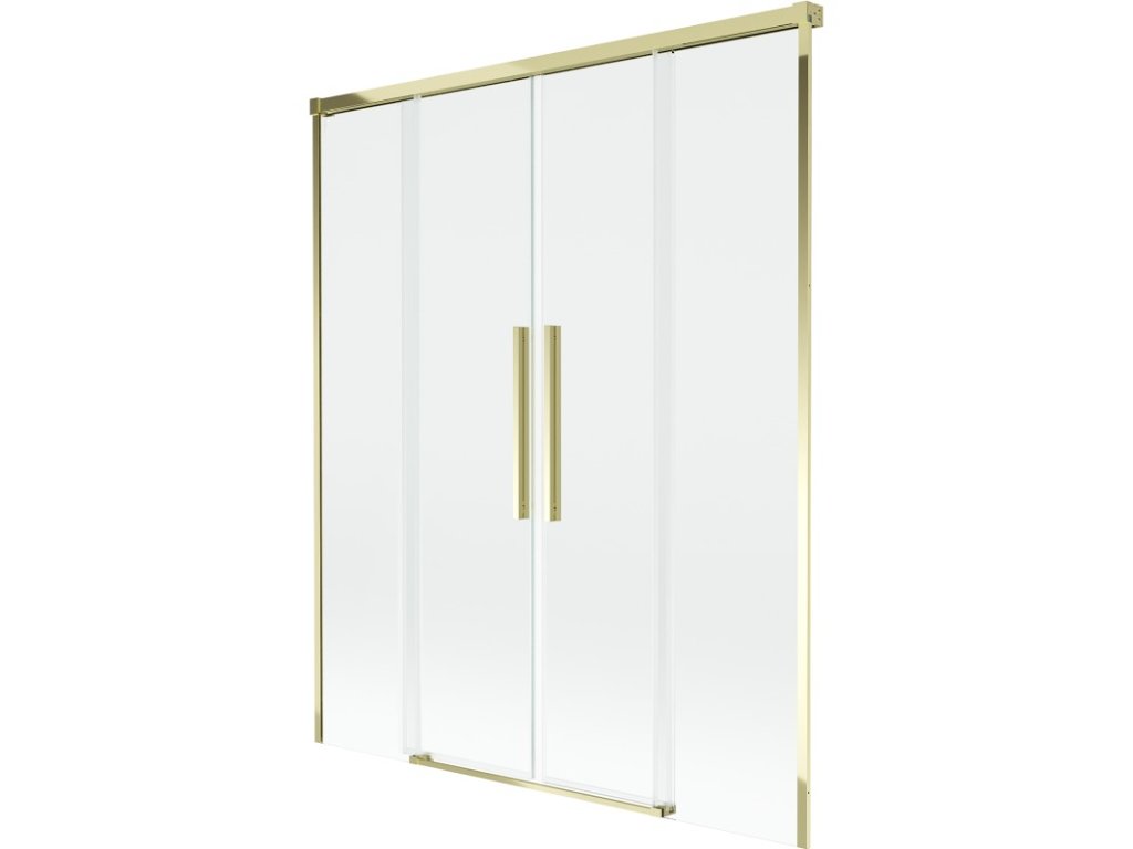 Technické údaje: Šířka: 150 cm Výška: 150 cm Typ: Dvoukřídlé Montáž: Univerzální Typ: Pohyblivé/Posuvné Typ skla: Tvrzené Barva skla: Průhledná Tloušťka skla: 8 mm Povrchová úprava: Zlatá Profil: Hliníkový Povlak pro snadné čištění Možnost nastavení šířky Neviditelný mechanismus posuvných a dveřních seřízení Možnost naklonění dveří pro čištění sítě Magnetický proužek a elastomerové těsnění, které odvádějí vodu Dva montážní systémy: - S profilem, který umožňuje vyrovnání nerovností stěn - Bez profilu v případě dokonale rovných stěnDoplňkové parametry