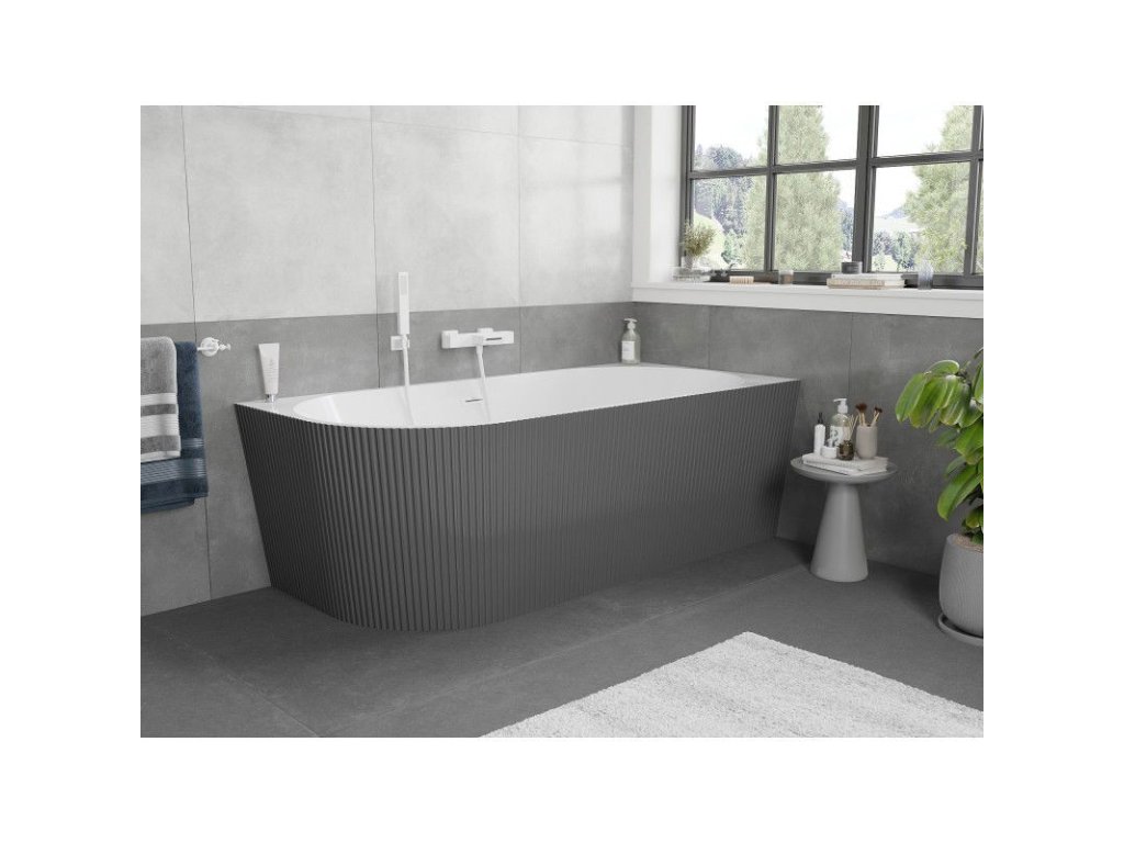 Specifikace produktu: Rozměry: 170 x 80 cm Výška: 58 cm Hloubka: 42,5 cm Montáž: Rohová, Levá Materiál: Sanitární akrylát Barva: Bílá/šedá Povrchová úprava: Bílá Struktura: Drážkovaná Otvor pro přepad: Ano Otvor pro baterii: Ne Sifon a zátka click-clack jsou součástí dodávky Odolné vůči baterii, baterii a UV zářeníDoplňkové parametry