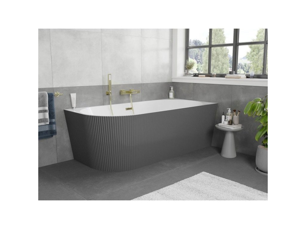 Specifikace produktu: Rozměry: 170 x 80 cm Výška: 58 cm Hloubka: 42,5 cm Montáž: Rohová, Levá Materiál: Sanitární akrylát Barva: Bílá/šedá Povrchová úprava: Zlatá Struktura: Drážkovaná Otvor pro přepad: Ano Otvor pro baterii: Ne Sifon a zátka click-clack jsou součástí dodávky Odolné vůči baterii, baterii a UV zářeníDoplňkové parametry