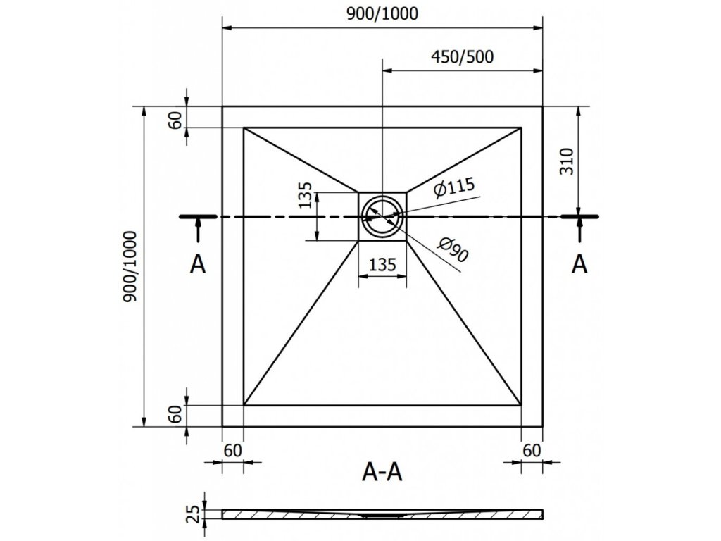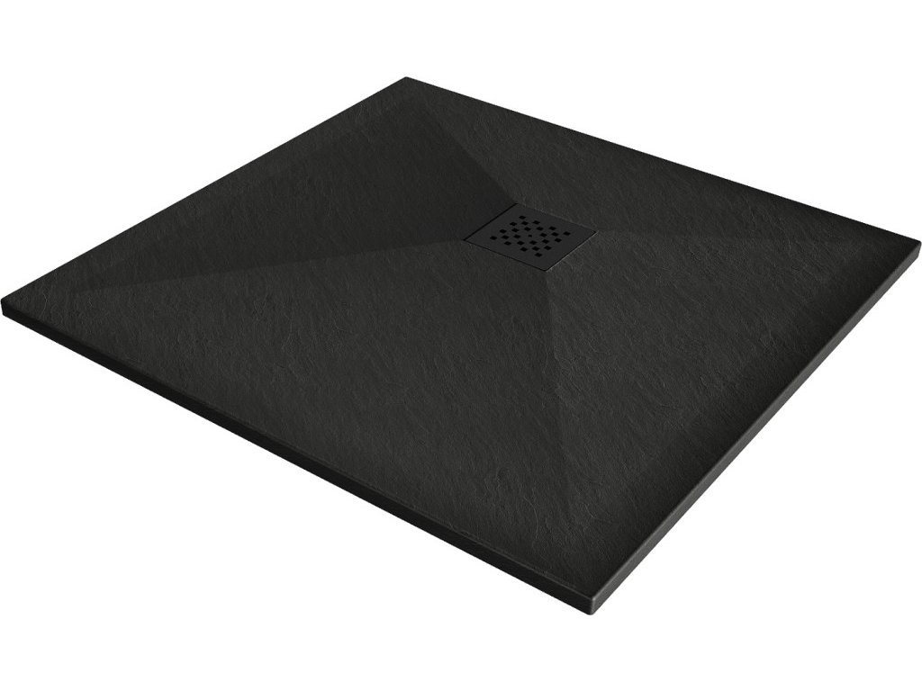 MEXEN/S - Stone+ čtvercová sprchová vanička 90 x 90, černá, mřížka černá 44709090-B