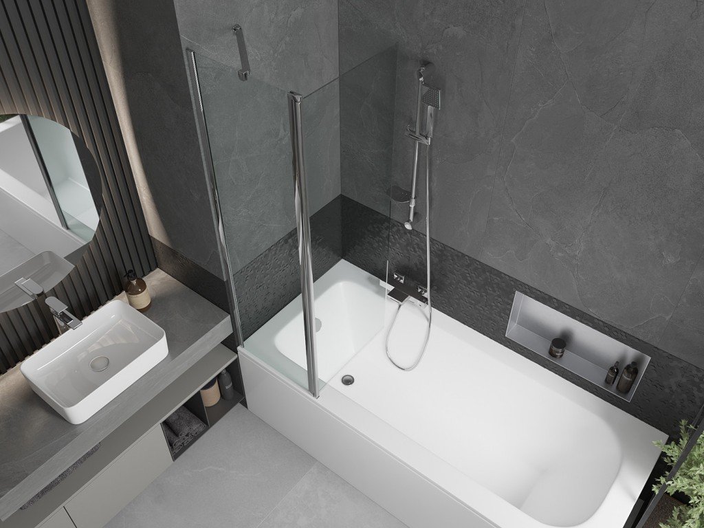 MEXEN/S - Vega obdélníková vana 170 x 70 cm s panelem + vanová zástěna 100, transparent, chrom 550117070X9410110100