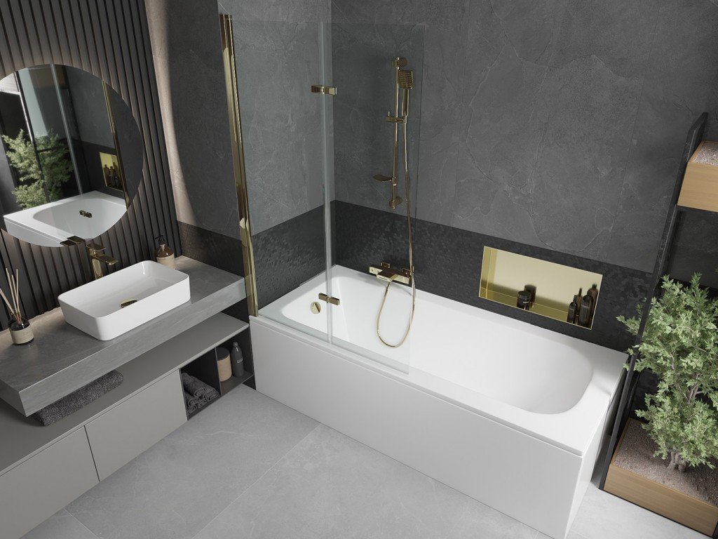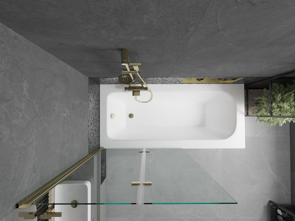 MEXEN/S - Vega obdélníková vana 180 x 80 cm s panelem + vanová zástěna 100, transparent, zlatá 550118080X9210025000