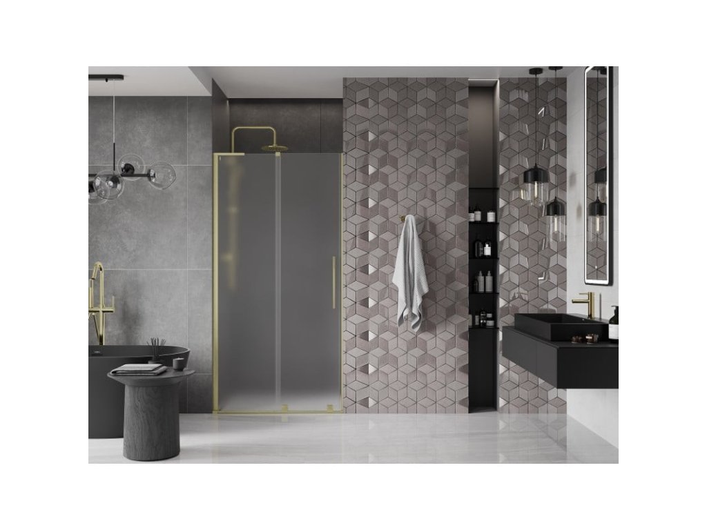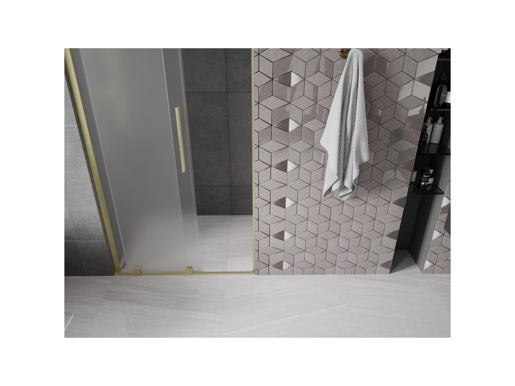 MEXEN/S - Velar L posuvné sprchové dveře 120, dekor, zlatá kartáčovaná 871-120-003-31-55
