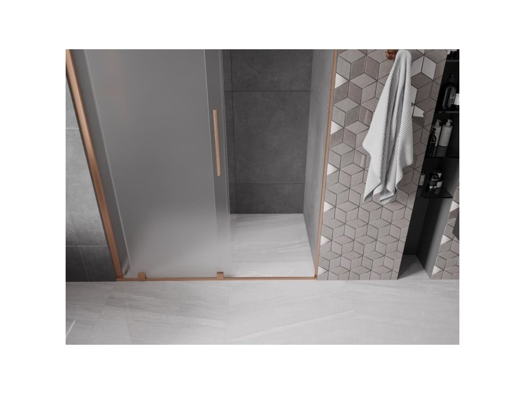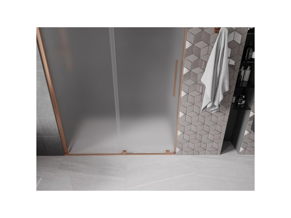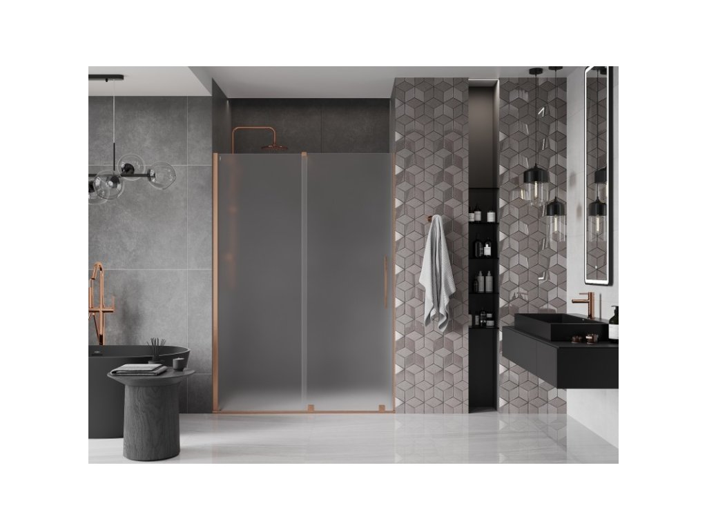 MEXEN/S - Velar posuvné sprchové dveře 160, dekor, měď kartáčovaná 871-160-000-31-65