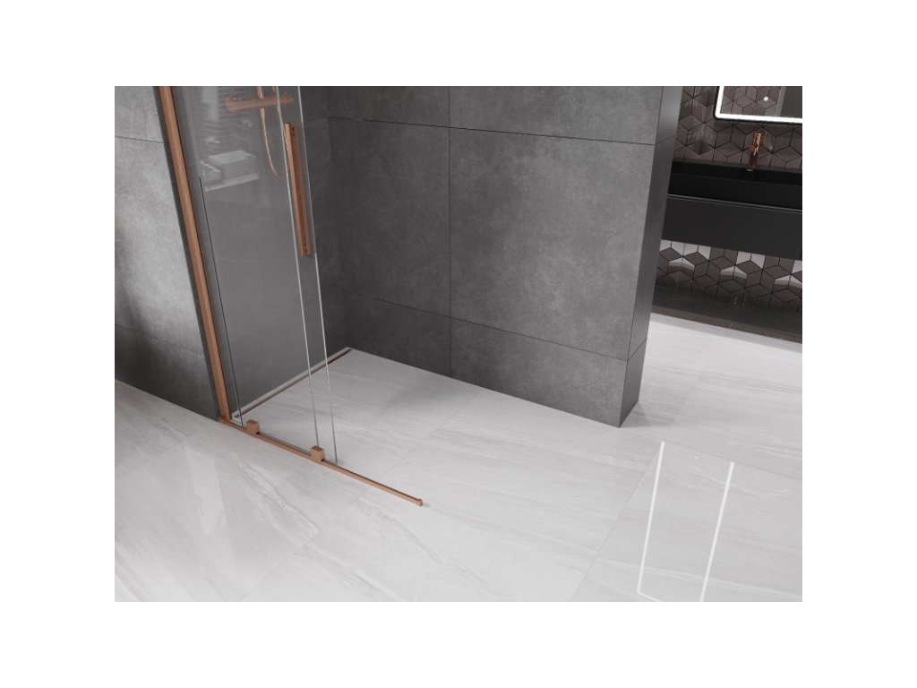 MEXEN/S - Velar posuvné sprchové dveře Walk-in 80, transparent, kartáčovaná měď 871-080-000-03-65