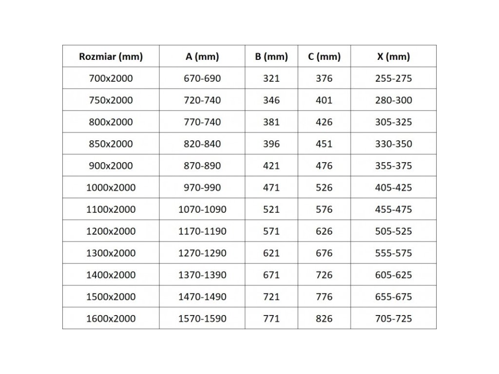 Velar posuvné sprchové dveře Walk-in, otevřenýSpecifikace produktu: