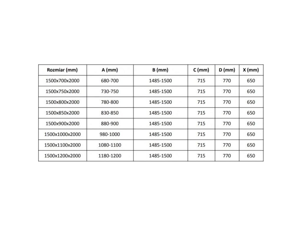 Specifikace produktu:Rozměr: 150x90 cm (dveře 150 cm, stěna 90 cm)