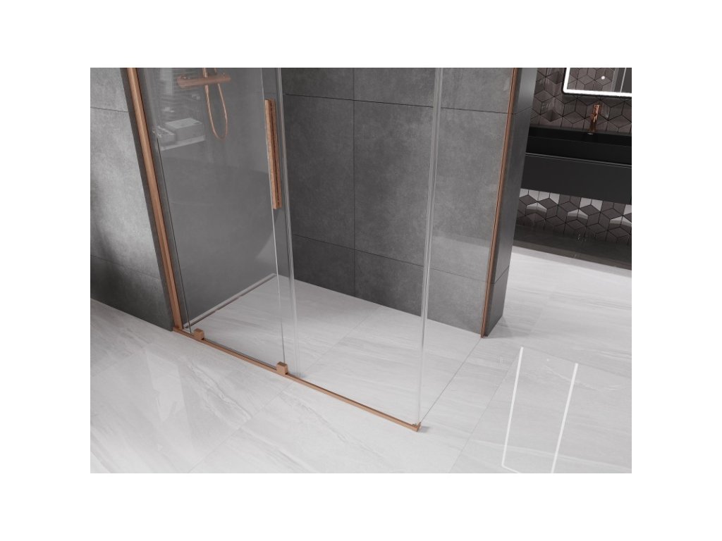 MEXEN/S - Velar sprchový kout 140 x 85, transparent, kartáčovaná měď 871-140-085-01-65