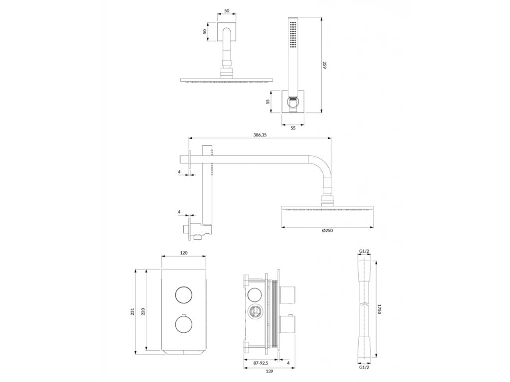 OMNIRES - CONTOUR termostatický podomítkový sprchový systém chrom /CR/ SYSCT11CR