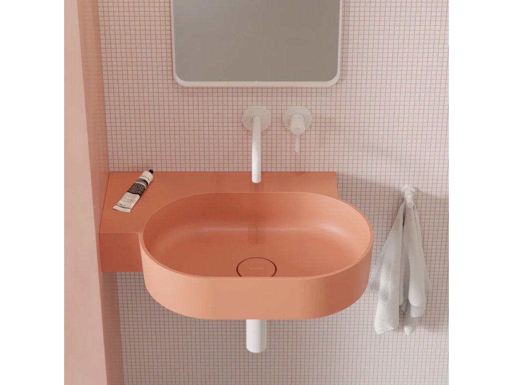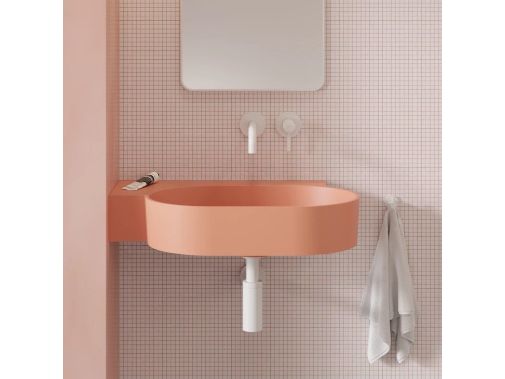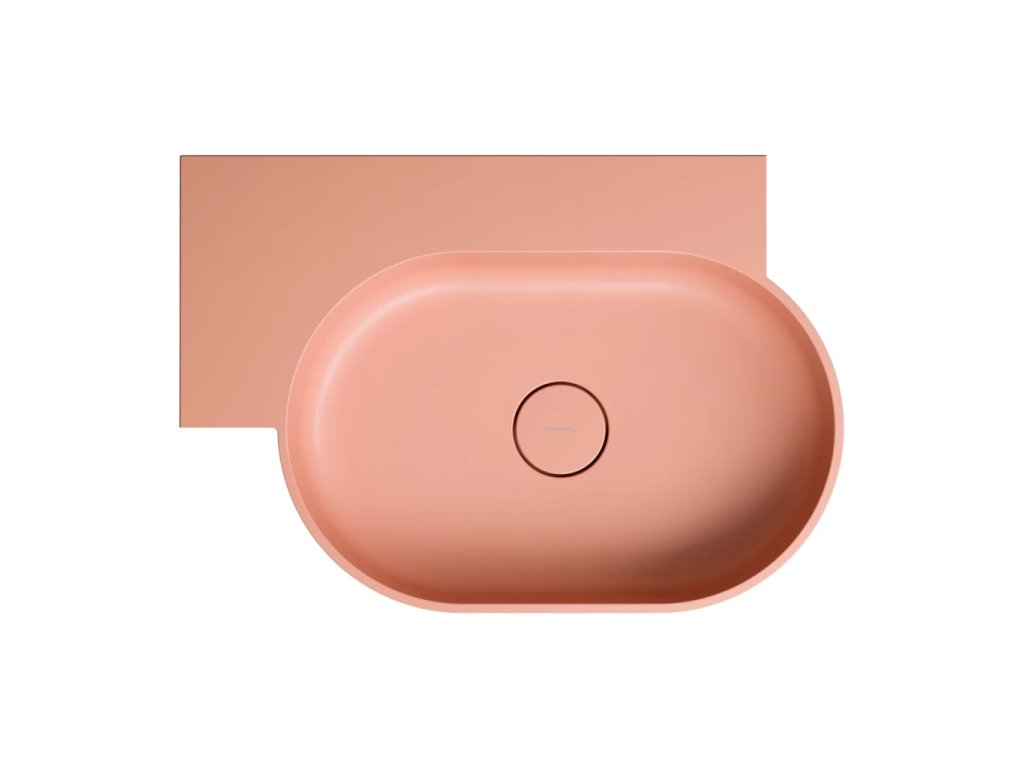 OVO v korálové barvě (RAL3012) je umyvadlo v decentním odstínu růžové se sametově hebkým matným povrchem..