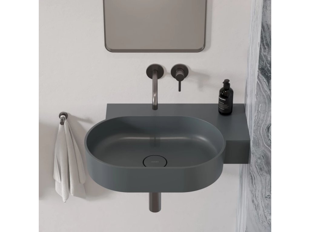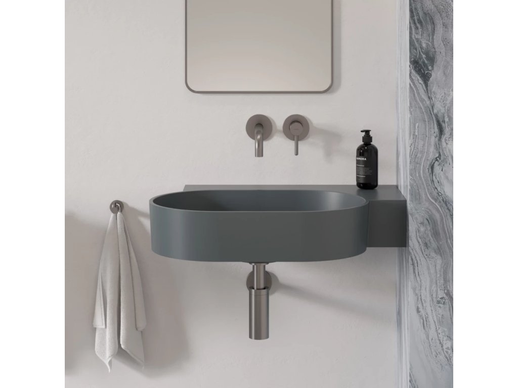 OVO v popelavě šedé barvě (RAL7022) je umyvadlo v elegantním odstínu teplé šedé s matným povrchem, který je sametový na dotek.