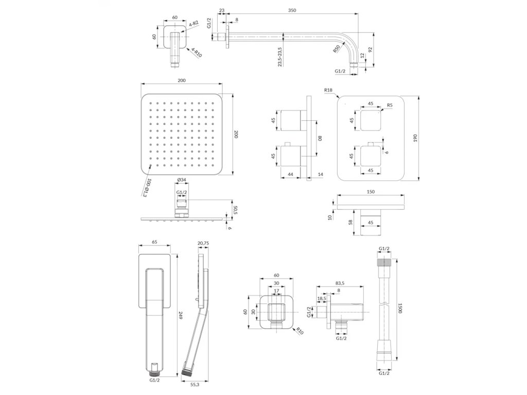 - mosazná úhlová přípojka (8815BL), s držákem na ruční sprchu