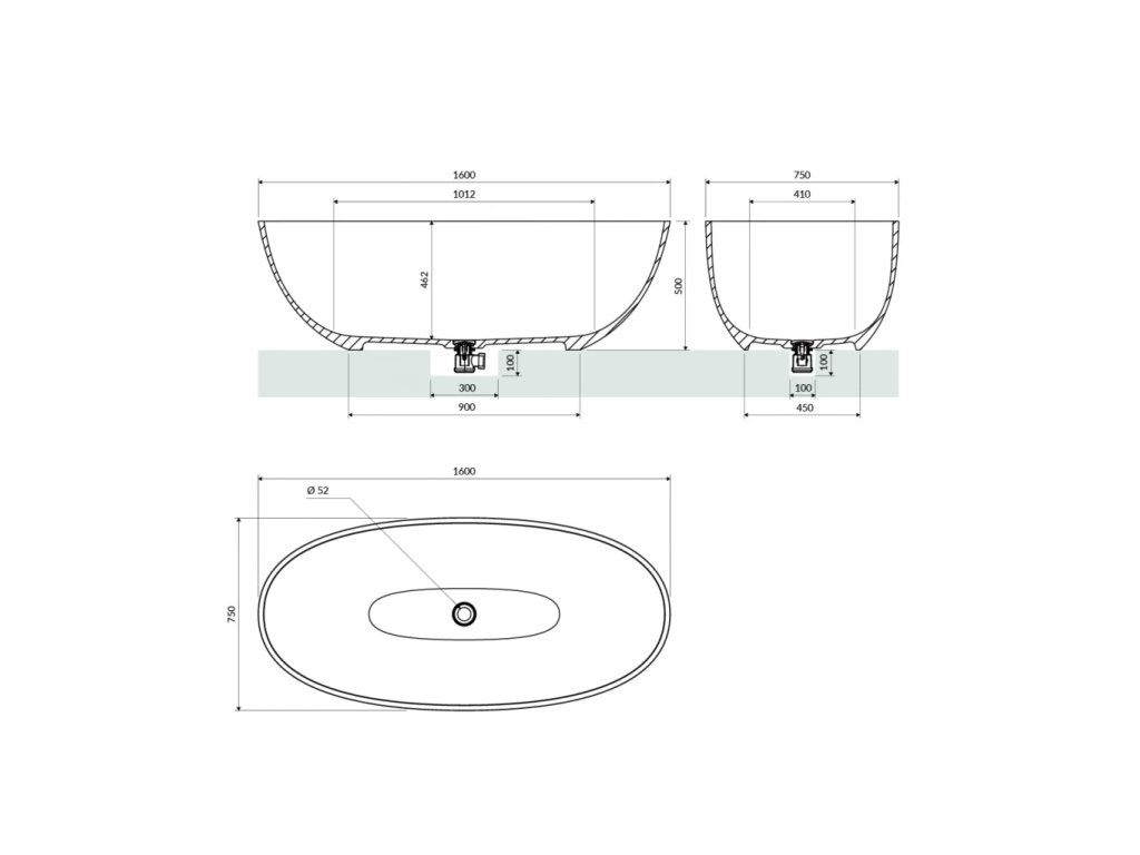 OMNIRES - SHELL M+ volně stojící vana,, 160 x 75 cm, šedá/popel SHELLWWAG