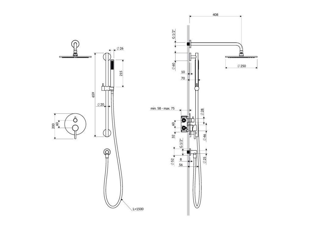 - Dešťová sprcha s ramenem ( WGSET1BL ), mosaz, rozměr: ø25 cm, dosah od zdi: 41 cm