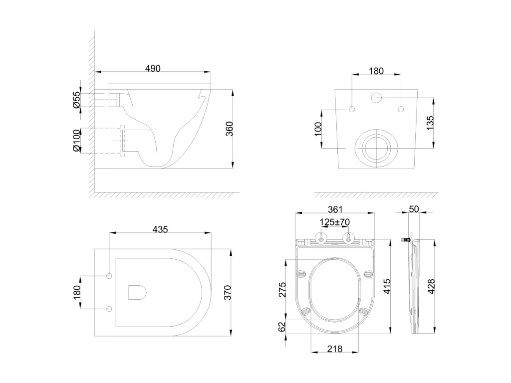 -Pro montáž závěsného WC s připojovací roztečí 180 mm nebo 230 mm