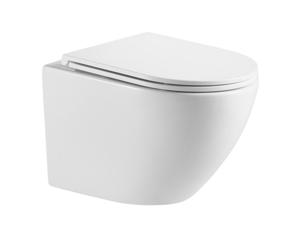 Závěsná klozetová mísa LIMNOS v jedné rovině se stěnou, bílá se SLIM sedátkem soft-close (CE-93-001-L)