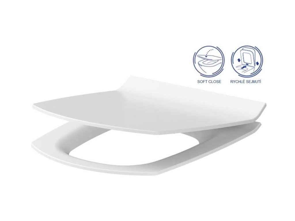 Tenké WC sedátko SLIM s pomalým zavíráním SOFT COLSE, s jednoduchým sejmutím a upevněním sedátka pomocí jednoho tlačítka EASY OFF ONE BUTTON.