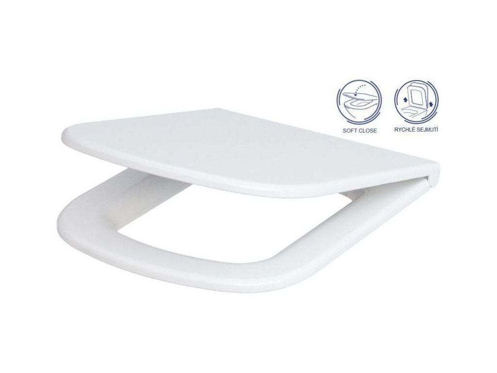Antibakteriální, duroplastové WC sedátko se systémem pomalého sklápění SOFT CLOSE, s jednoduchým sejmutím a upevněním sedátka EASY OFF.