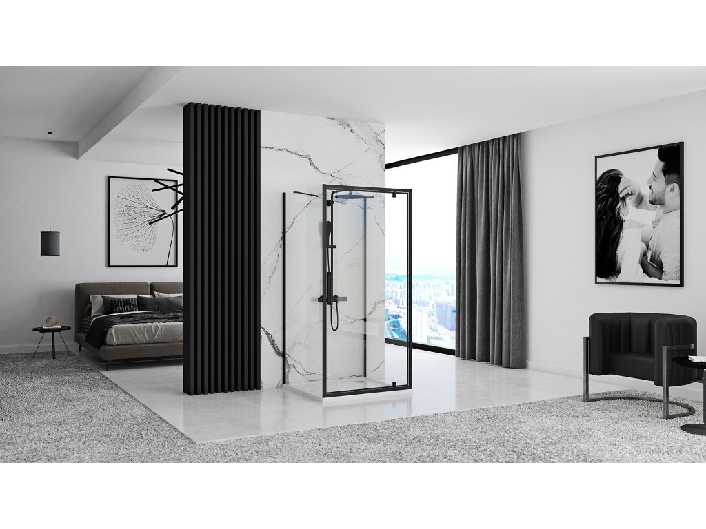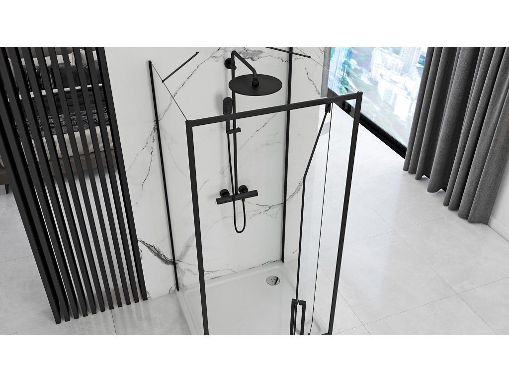 REA/S - Přístěnná sprchová kabina Rapid Swing Black Dveře: 120 x Sprchová zástěna: 80 KPL-009961