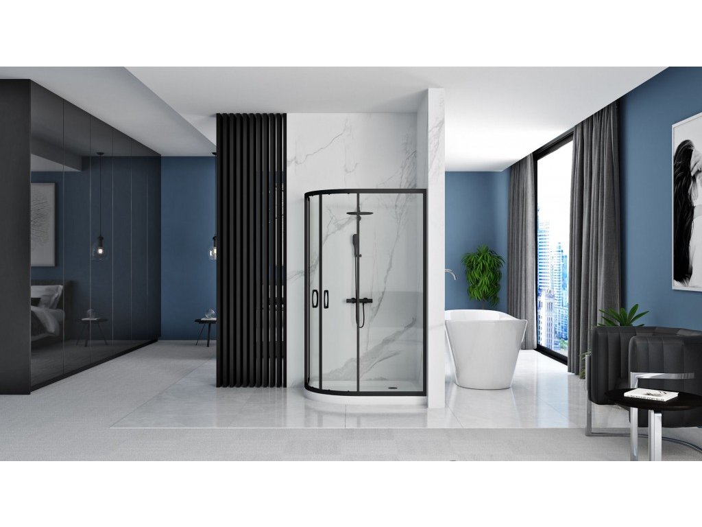 REA/S - Sprchová kabina Look Black 80x100 + Sprchová vanička Look White vlevo KPL-K7901
