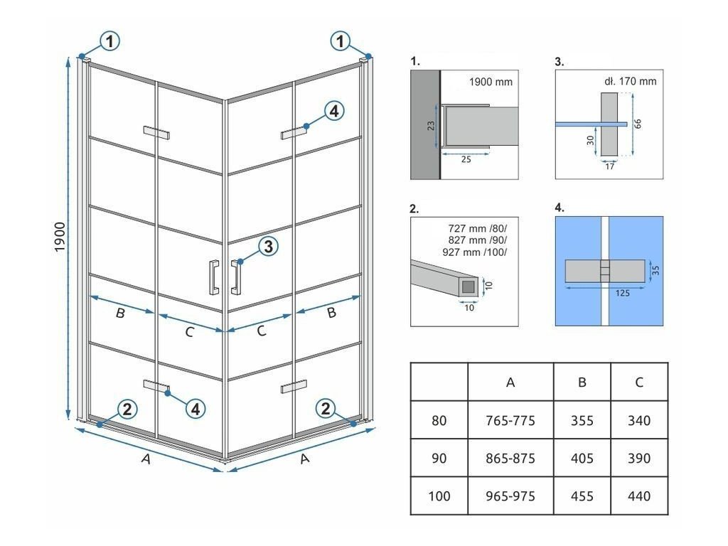 Sprchový kout Molier se skládá ze dvou skleněných dveří, zakončených elegantními matně černými prvky. Tento model je ideálním řešením pro malé a nepohodlné koupelny. Dveře lze přiklopit ke stěně. To dává neomezené možnosti v praktickém využití koupelny. Sklo v kabině je nejen bezpečné, ale také praktické, díky povrchové úpravě Easy Clean. Díky této moderní technologii se na skle neusazuje vodní kámen a čištění nevyžaduje použití silných prostředků.