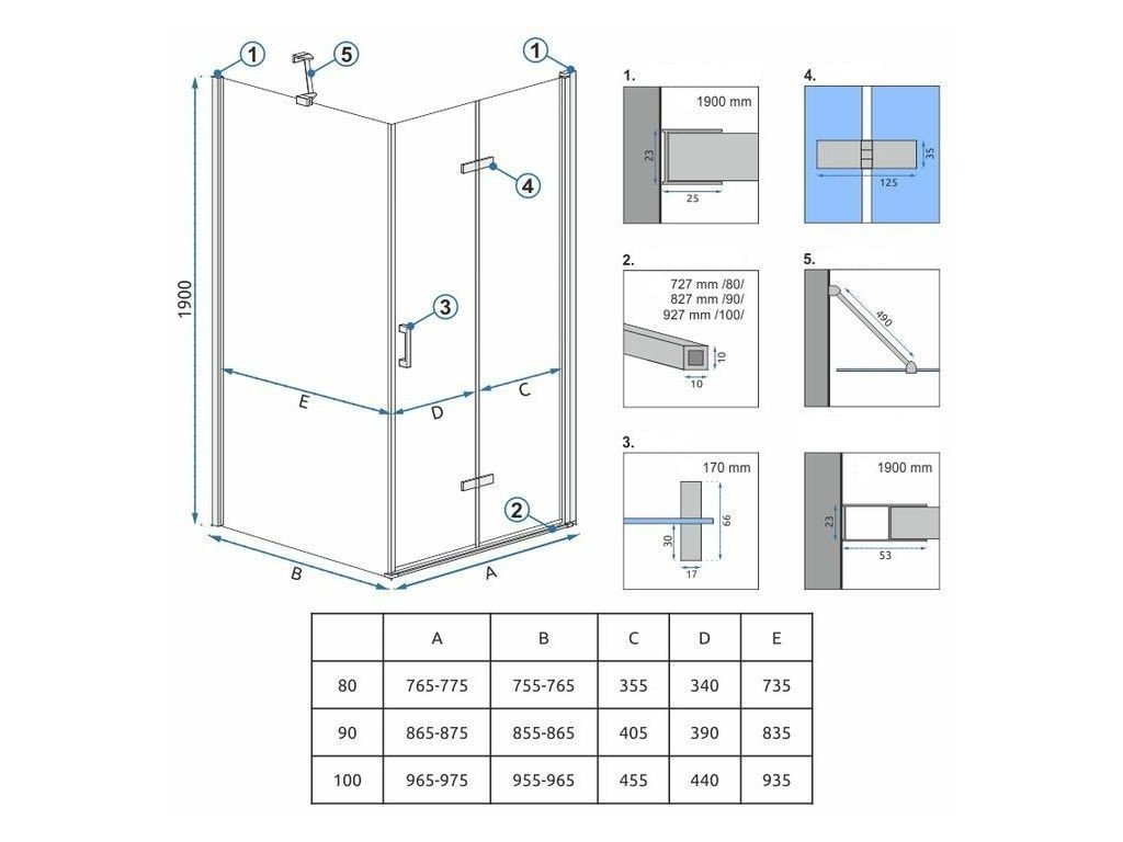 REA/S - Sprchová kabina Molier Chrom 100x80 KPL-K1371