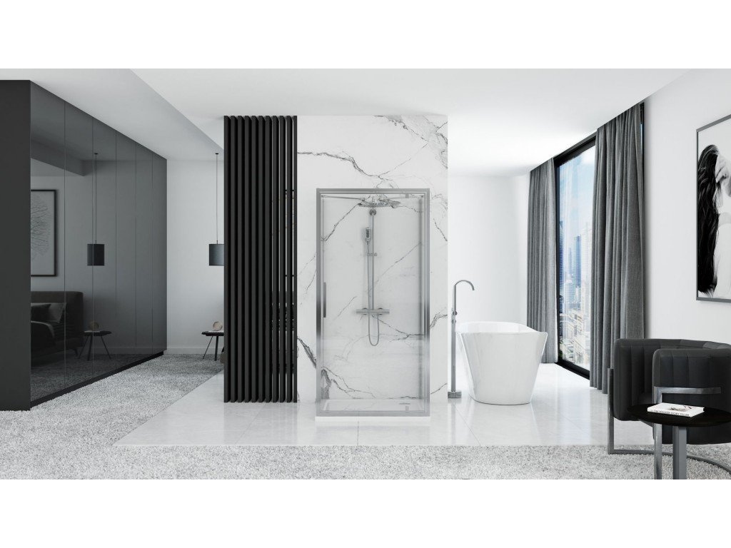 Představujeme vám výjimečně krásný sprchový kout Rapid Swing Chrome. Dveře a stěny jsou vyrobeny z vysoce kvalitního, 6 mm silného tvrzeného skla. Jsou opatřeny ochrannou vrstvou Easy Clean, která usnadňuje udržování čistoty sprchového koutu. Díky speciální výrobní fázi jsou odolné a snadno se čistí. Povlak Easy Clean Nano, který jsme na sklo nanesli během výroby, způsobuje, že voda kondenzuje na povrchu skla a stéká spolu s případnými nečistotami. To vám umožní bez námahy udržovat ve vaší koupelně bezvadnou čistotu. Model Rapid Swing Chrome se vyznačuje efektivním systémem naklápění, který umožňuje snadné otevírání a zavírání dveří. Systém pantů je navržen tak, aby fungoval dokonale hladce po celou dobu jeho životnosti. Díky pečlivě promyšleným řešením zajišťují těsnění dveří 100% těsnost a spolehlivost během používání. Sprchový kout je k dispozici v 54 variantách, takže si každý může vybrat tu pravou pro svůj projekt. Před nákupem pečlivě změřte šířku a výšku výklenku. Dobře zvolené sprchové dveře vytvoří dokonalý vzhled vaší koupelny a poskytnou vám správnou míru soukromí. Dveře jsou univerzální (pravé/levé) a jsou vhodné pro instalaci na podlahy s liniovým odtokem nebo na sprchové vaničky. Nabízíme také prodlužovací profil, který najdete v našem obchodě. Upozornění: Dveře ve velikostech 70-100 nemají přídavnou stěnu, která je k dispozici ve velikostech 110-150. Návod k obsluze Rapid Swing 80-100 Návod k obsluze Rapid Swing 110-150Doplňkové parametry
